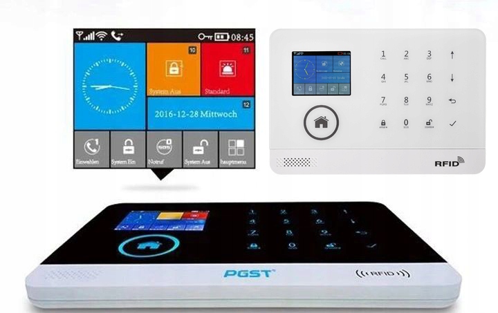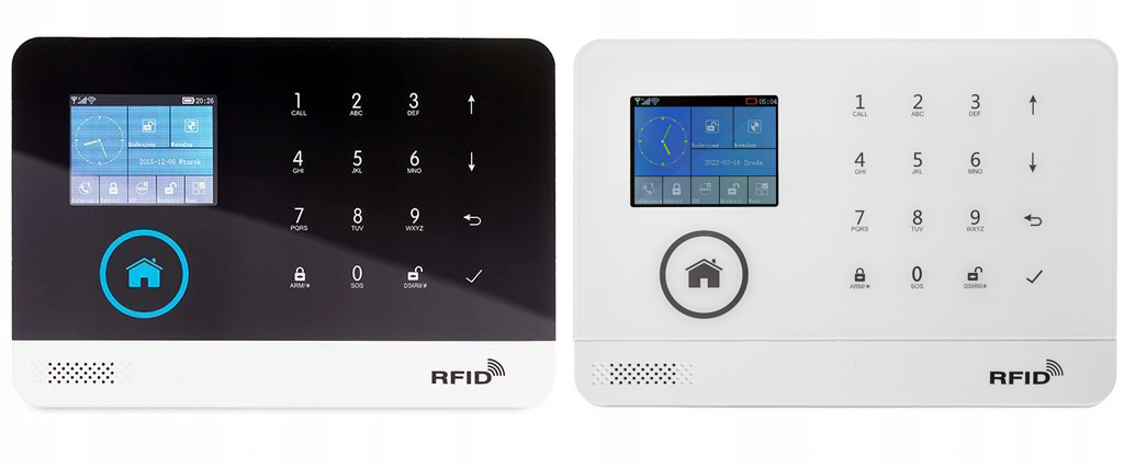 System alarmowy GSM można rozbrajać/uzbrajać przy pomocy klawiatury centrali alarmowej oraz małych, kompaktowych pilotów, kart RFID, aplikacji TUYA Smart Life na telefonie lub zdalnie za pomocą zwykłego połączenia telefonicznego.