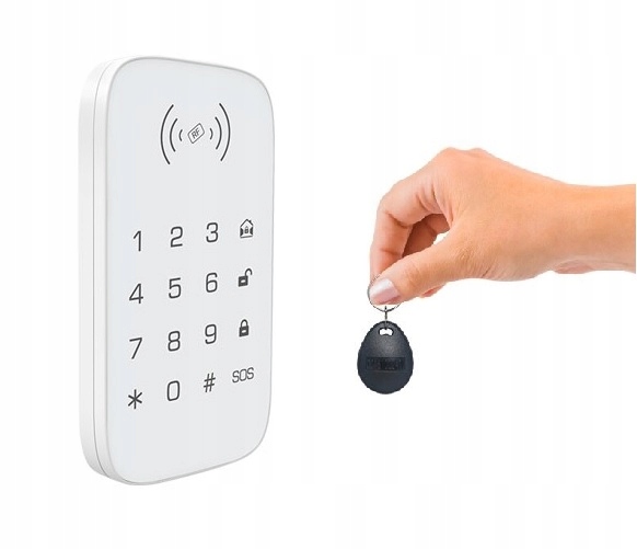 Klawiatura posiada też czytnik kart RFID, więc wystarczy przystawić pastylkę aby rozbroić centralkę alarmu.