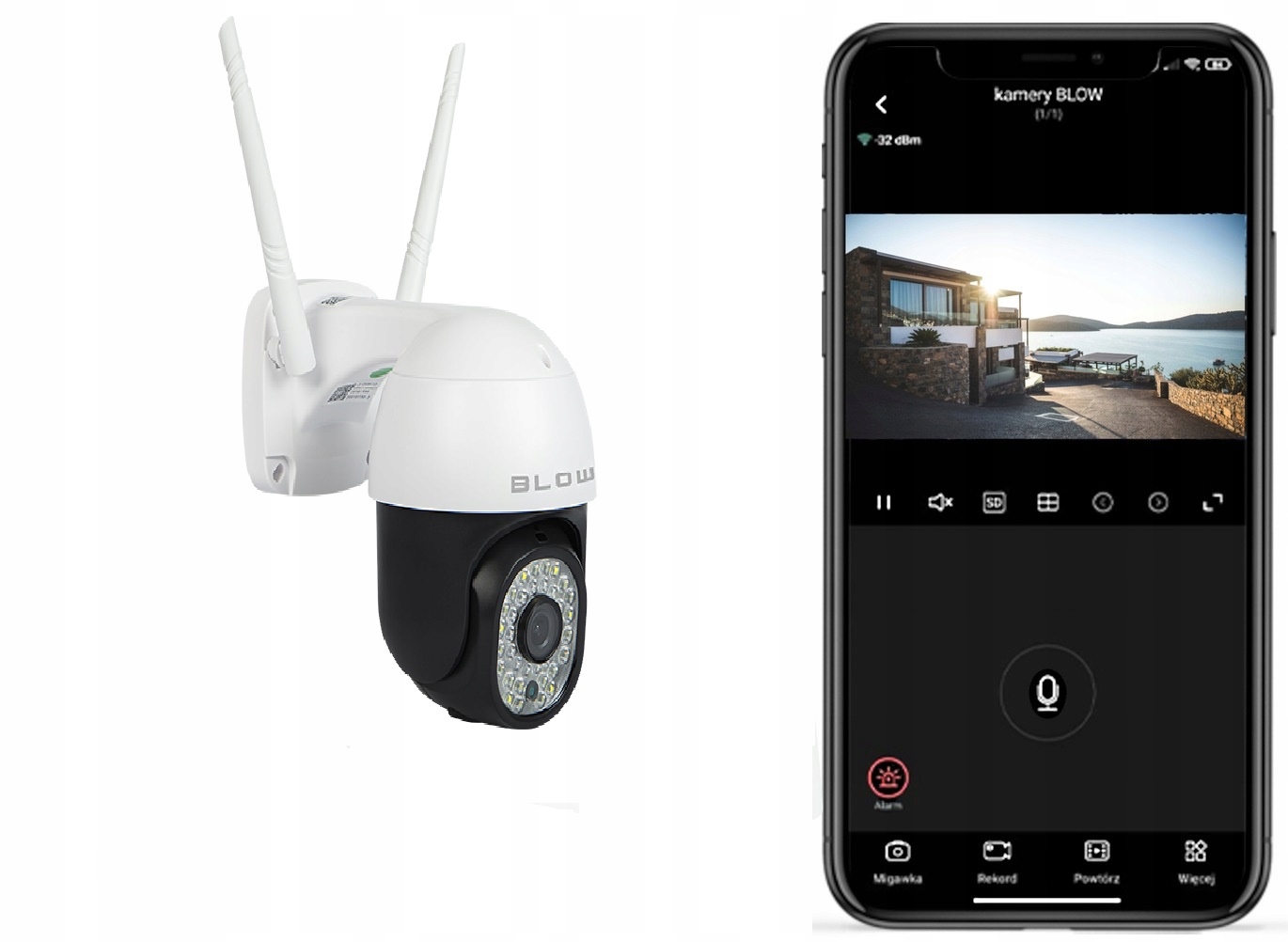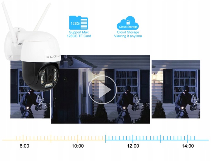 Zewnętrzna kamera marki Blow zapewnia stałą możliwość obserwacji Twojego domu, garażu, ogródka czy innych przestrzeni. Przesyłany obraz na żywo pozwoli na szybką interwencję w przypadku jakichkolwiek problemów. Kamerę zewnętrzną można również umieścić wewnątrz sklepu, budynku, hali, magazynu.